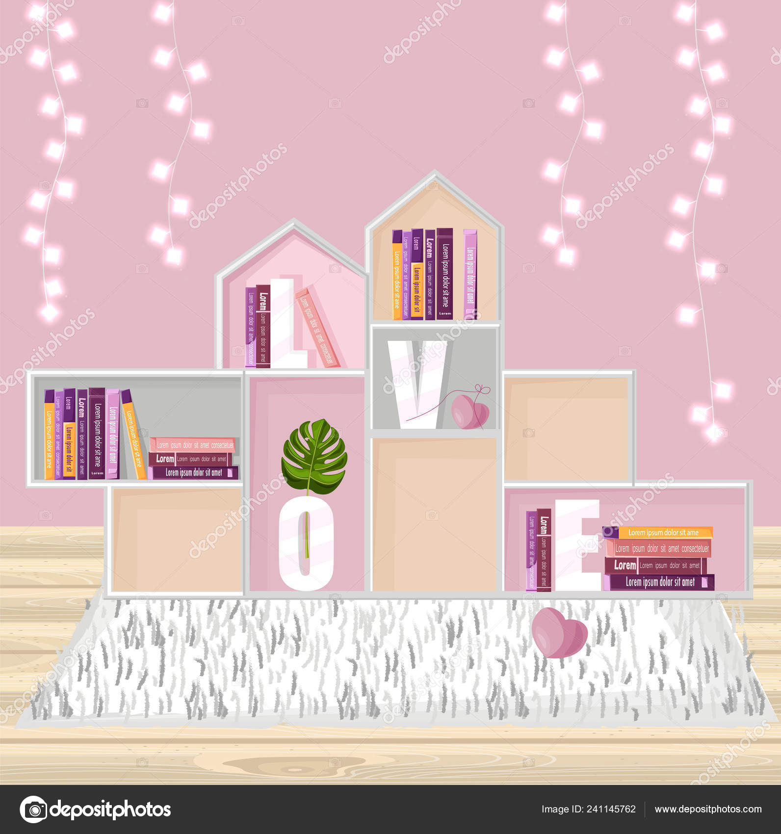 Abstract Shelves For Books Decor Vector Modern Design Flat