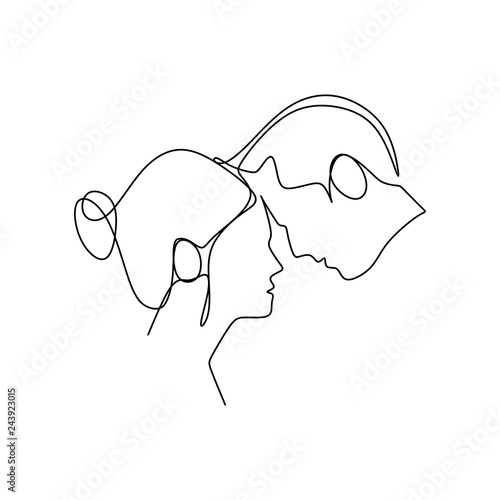 Set Of Abstract Face One Line Drawing Portrait Man And Woman