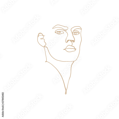 Continuous One Line Drawing Of Man Face Portrait Hairstyle